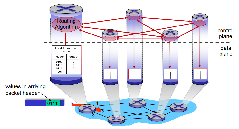data plane은 포워딩에 관련된 부분으로 라우터 내(지역적인)에서의 기능을 다룬다.