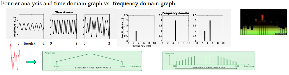 fourier analysis(푸리에 분석)을 통해 time domain 그래프 혹은 frequency domain 그래프로 나타낼 수 있다.