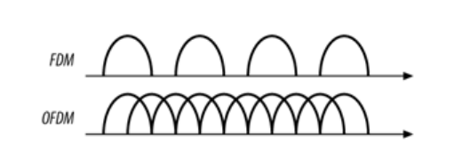 과거에는 FDM에서 신호끼리 간섭이 나지 않도록 간격을 조금 벌리는 이른바 가드 밴드라는 기법이 있었다. 이는 손해보는 기법이기에 상당히 좋지 않았다고 한다. 그런데 서로 분할된 여러 대역폭을 동시에 사용하는 MCM(multi - carrier - modulation) 기법이 나오면서 겹쳐도 상호 간섭이 일어나지 않게 중첩시키는 방법을 찾아냈다. 이는 동일한 대역폭을 2배 조금 넘는 효율을 볼 수 있도록 한다.