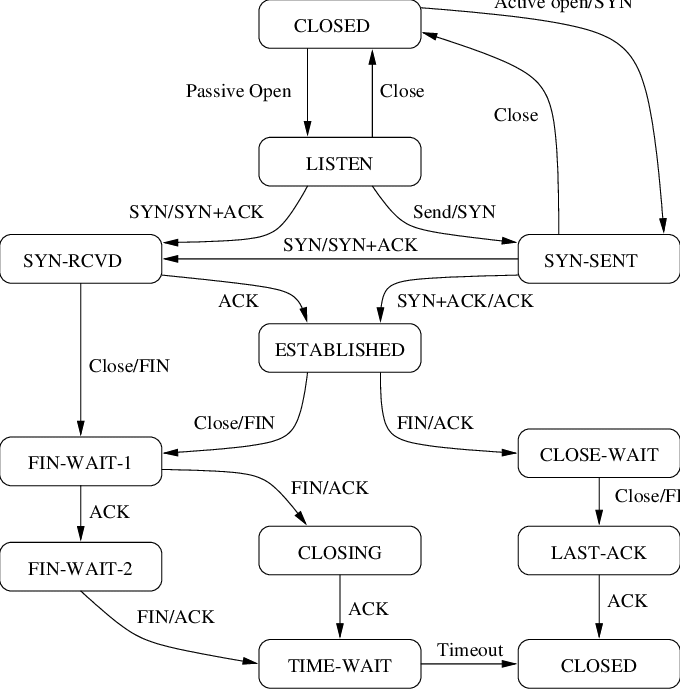 - Close/FIN: 수신자가 FIN을 받는 경우 CLOSE-WAIT 상태로 전환.