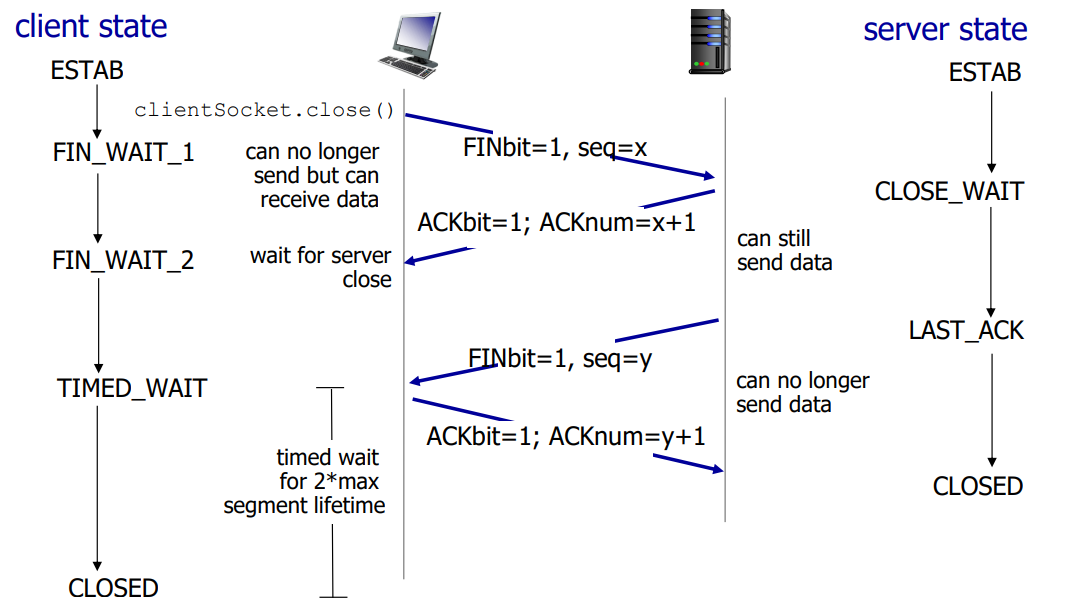 - FIN/ACK: 수신자가 동시에 FIN과 ACK를 보내면 CLOSING 상태로 전환.